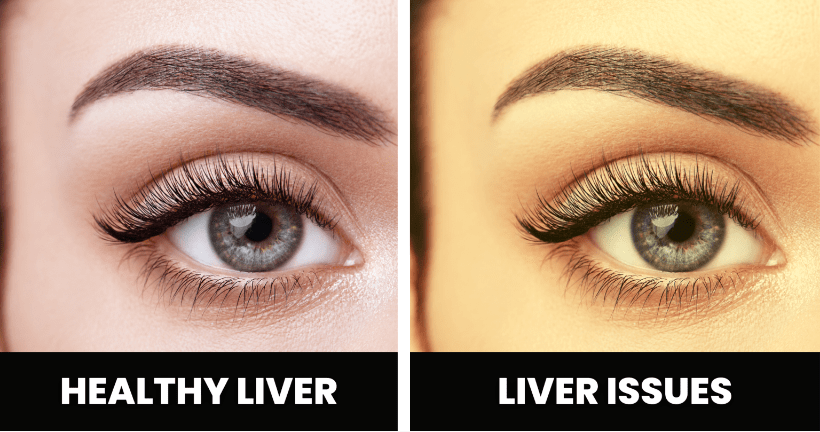 The yellow color on the skin or eye whites is a common skin symptom of liver issues. Go see a doctor as soon as possible to prevent serious health complications.