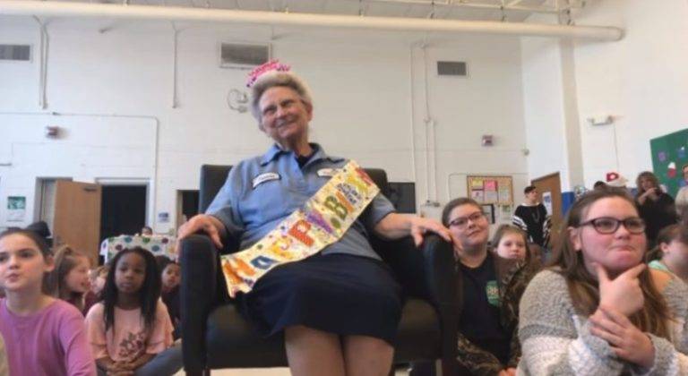 77-year-old school janitor who never had a birthday party hears her name over the loudspeaker