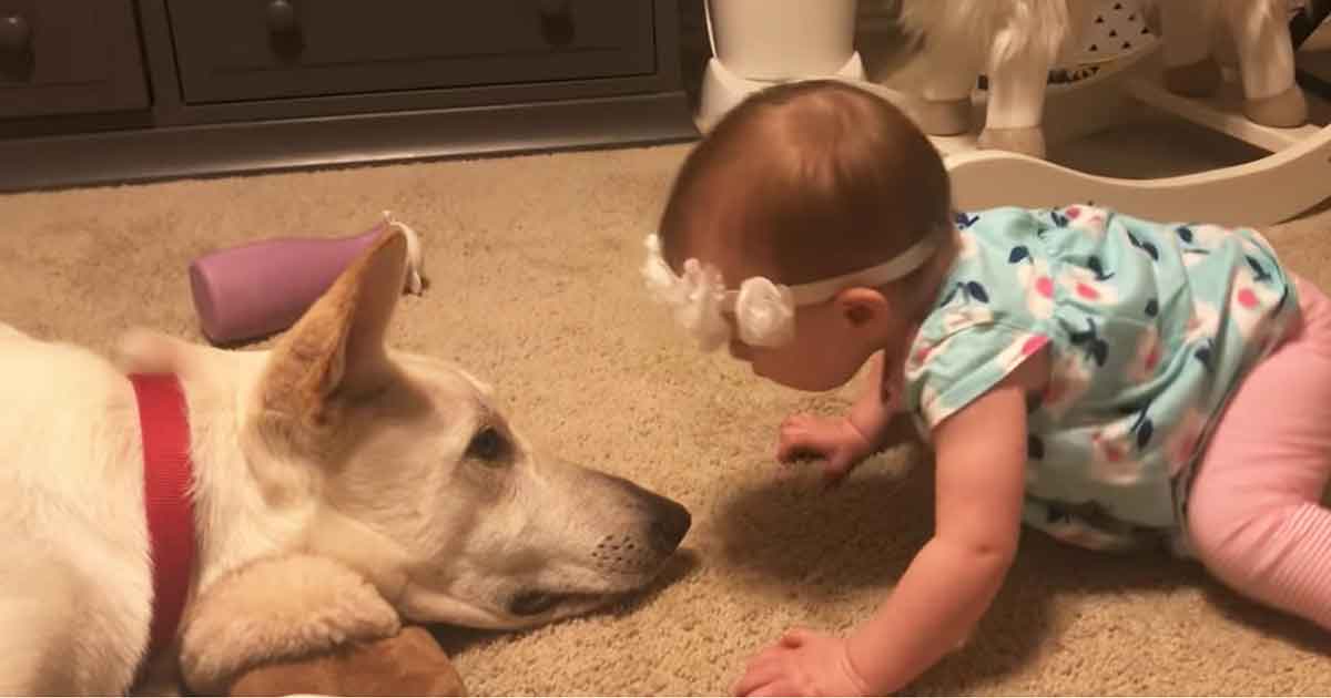 The baby Quinn, loves the white German shepherd of the family, Larry, and they melt hearts all over the world after being documented doing the sweetest thing in the world.