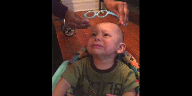 Once his parents took him to the doctor, they got him a pair of glasses that should regulate his vision so he can be a normal adult when he grows up. At first, when his mother was trying to put the glasses on him, he was whining and moving his hands, as if he didn’t want to wear them.
