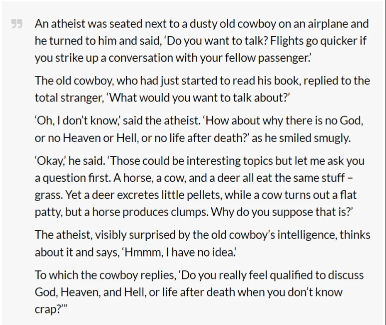 web log free A Cowboy And An Atheist Pass The Time Talking About God - Breaking NEWS