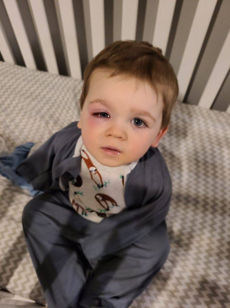 Her son suffered from severe subcutaneous tissue inflammation. Within 12 hours his eye had turned pink and inflamed.