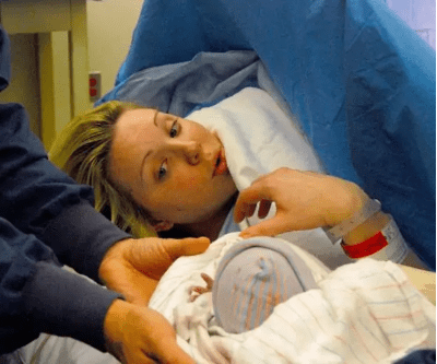 Liz barely had a brief opportunity to see the happy new parents’ adorable baby daughter (who was photographed) before medical personnel rushed her to the newborn intensive care unit. Liz had to be kept under observation for 24 hours after delivery, so she could not hold their daughter right away.