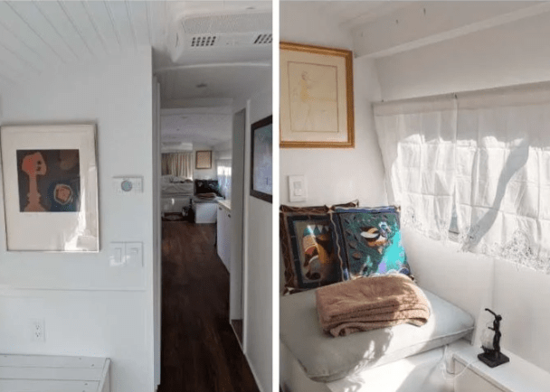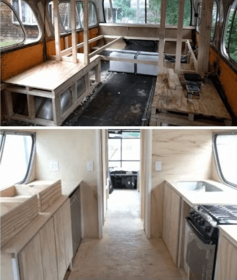 The dilapidated bus was turned into a fashionable and comfortable residence on wheels (Greyhound) in three years.
