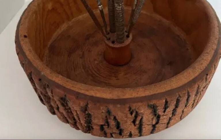 The nutcrackers could also often been found with a matching wooden bowl designed to look like a chestnut.