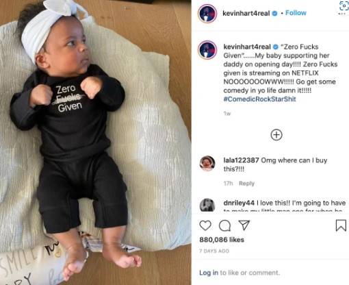 The post has received more than 800,000 likes since it was uploaded on the first day Hart’s Netflix special launched. Comments streamed in by the hundreds. Many people expressed their “love” for the beautiful baby girl, Kaori, and her controversial shirt.