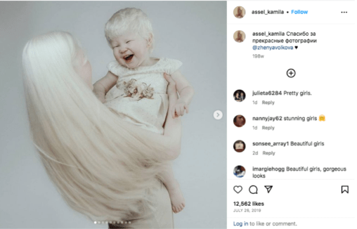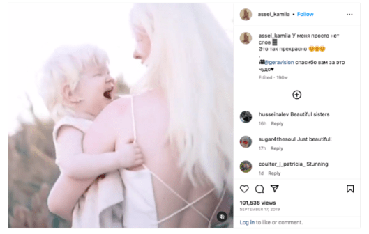 When she was born albino, her mother, Aiman Sarkitova, stated she was shocked.