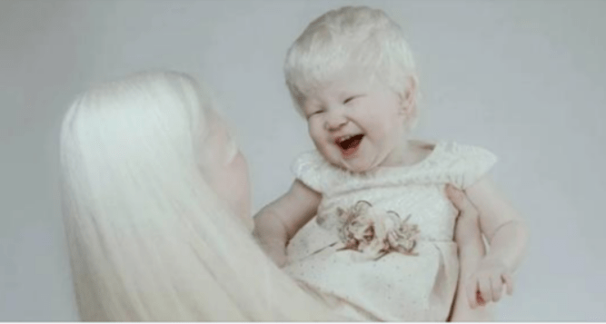 Albinos often feel alone because the condition is so uncommon, but these two sisters are fortunate in that they will always have a relative who shares their condition.
