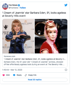 I don’t know about you, but I really enjoy all of Barbara Eden’s writings. I only want she could stay this young and healthy for many years to come!
