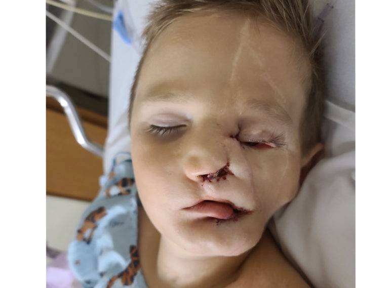 He was just 21 months old when the two 100-pound dogs attacked him. He lost half of his face, his teeth were crushed, and he suffered a broken arm and punctured lung.His family didn’t think he would survive but this little fighter made it through and has since had to endure around 50 surgeries.