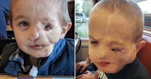 He was just 21 months old when the two 100-pound dogs attacked him. He lost half of his face, his teeth were crushed, and he suffered a broken arm and punctured lung.His family didn’t think he would survive but this little fighter made it through and has since had to endure around 50 surgeries.