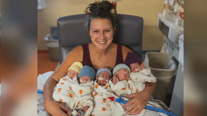 “One of the best moments of our NyICU (Nursery Intensive Care Unit) journey was being able to hold all five of my babies for the first time,” said Stephanie Freels in the press release. “I was so emotional leading up to the moment I could finally hold all of them in my arms after carrying them in my belly. It was a moment I will forever cherish.”