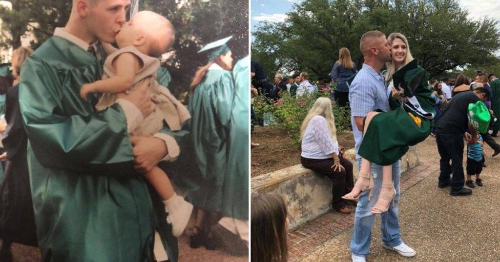 Those positive feelings must have been ten-fold for Texas dad Dennis Roach in 2018, as his daughter’s high-school graduation gave him the opportunity to recreate a photo taken back in 2000 – and the result was enough to warm hearts all over the world…