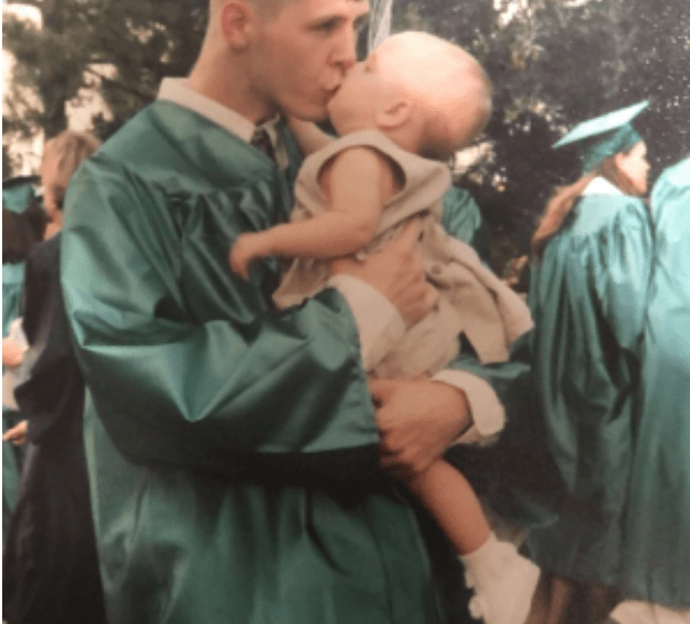 Dennis was fortunate to have his infant daughter, Tori, present for his high school graduation in 2000. At the moment, the duo posed for a snapshot in which Dennis kissed his daughter – the perfect memento reminder of his special day.