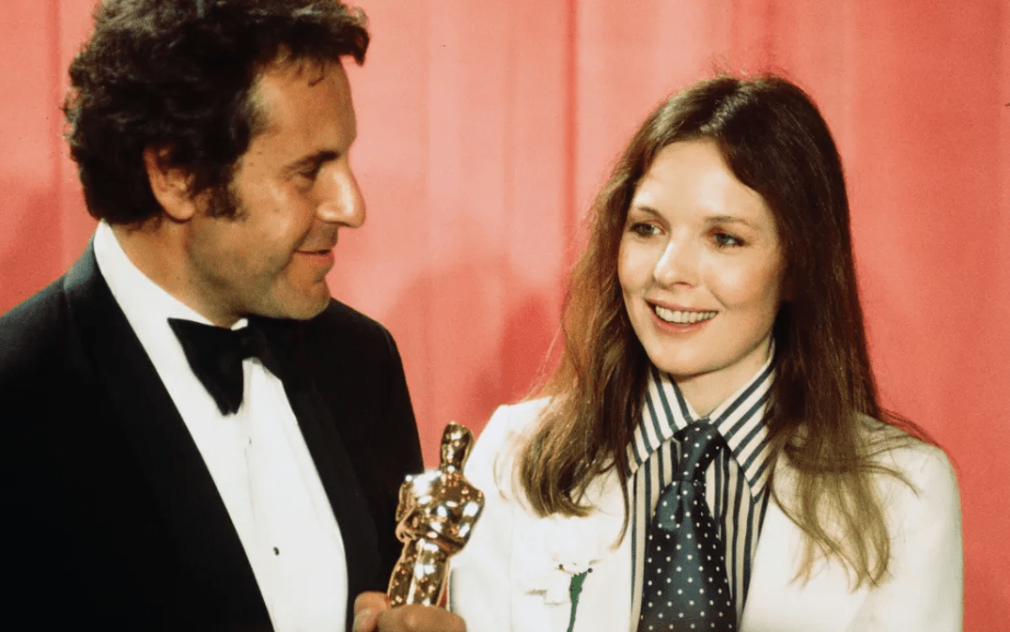 Milos Forman and Diane Keaton backstage after winning an award at the 48th Academy Awards in Los Angeles, 1976 | Source: Getty Images
