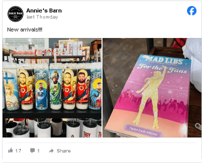 Annie Stowe is the owner of a store called Annie’s Barn in Kansas City. She makes and sells custom items related to the city, and some of the most popular are Chiefs merchandise. Her products include mugs with the face of coach Andy Reid and novelty prayer candles with Travis and Taylor on them.