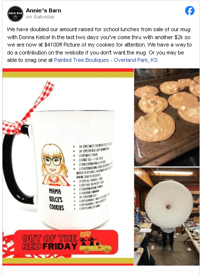 The collaboration was a huge success: according to a Facebook post, Annie’s Barn sold 2,000 mugs in just a few days, raising a whopping $10,000 for the cause.