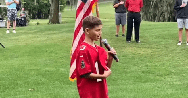 A standout among kids singing the National Anthem, 10-year-old Jadon Perez’s rendition is gaining attention on social media. Known for his remarkable voice on TikTok, Jadon showcased his talent at a golf tournament fundraiser. The announcer, impressed by his performance, shared, “I want him to come try out for The Voice, that’s how good this little boy is.”