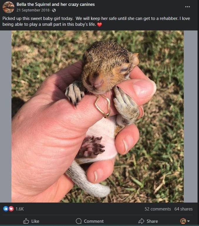 Once brought home, the family took care of the squirrel by feeding it. They chose to refer to her as Bella.