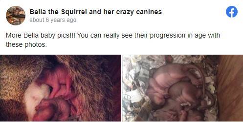 But at that point, they realized what Bella was actually attempting to convey to them. They found three small baby squirrels inside the box as they laid Bella down; these were the three arrivals that Bella had clearly wished to present to her other family.