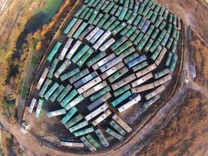 Photo taken from a helicopter by a photographer in Hangzhou, Zhejiang Province, China. Many people wonder what it means, especially since it looks like Lego pieces. It was the photographer who discovered several buses that had been decommissioned and stored in a locked area. The photo went viral and only a few people immediately guessed what it was.