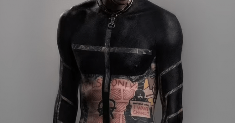 Machine Gun Kelly initially unveiled the striking tattoo in an Instagram post captioned “For spiritual purposes only.” The tattoo covers his entire upper body in black ink, with only a few of his original tattoos visible through small gaps along his arms and within a cross symbol on his chest.