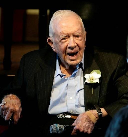 Former President Jimmy Carter, 99, attended his late wife Rosalynn’s funeral, despite being in hospice care. He arrived at the event in a wheelchair, dressed in a sharp suit and covered with a blanket. Rosalynn, his wife of over 77 years, had been laid to rest at the Jimmy Carter Presidential Library and Museum.