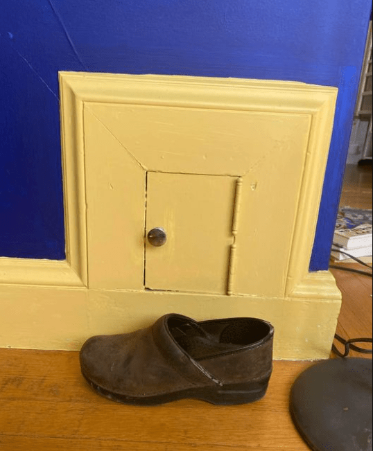 but can’t find the backside of the tiny door! it’s painted over, and feels very secure- almost locked. this house has a complex laundry chute system but this seems way too small to be a part of it.