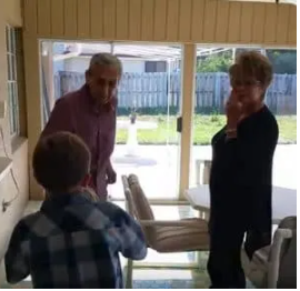 Wanting to find out what was going on, the grandpa went outside to check out the patio. It is at this moment that his grandson, Cole, who lives in another state greeted him.