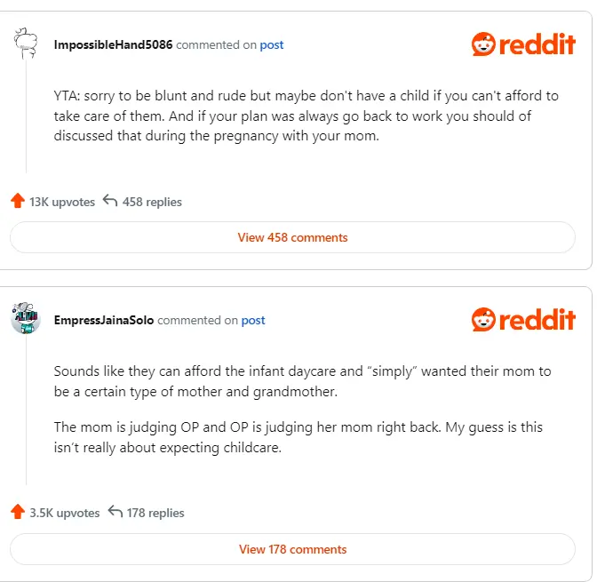 The daughter found this unreasonable, stating, “I want to save money to bring down our debt.” She turned to Reddit for advice, but responses were harsh. Commenters felt she should have planned better and respected her mother’s right to refuse.