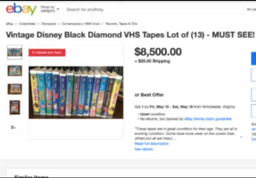 However, Disney tapes in particular might be valuable to collectors for other reasons. Reddit user Reddit_Executive speculates that, because of the specific branding on original releases, these movies could go for quite a bit: “On the spines of some VHS (and BetaMax) tapes is a black diamond with Walt’s signature on it.