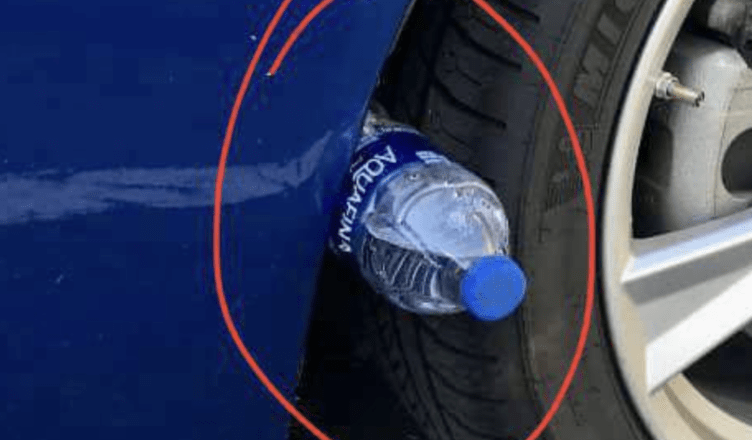 Should you ever encounter a plastic bottle lodged between your car tire and frame, it is crucial to be attentive and take immediate action. In such emergencies, promptly dialing 911 is essential.