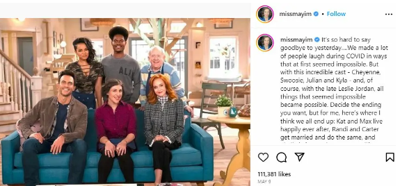 Bialik posted a picture of herself and her Call Me Kat coworkers earlier this week on Instagram. She captioned the picture, “It’s so hard to say goodbye to yesterday.”