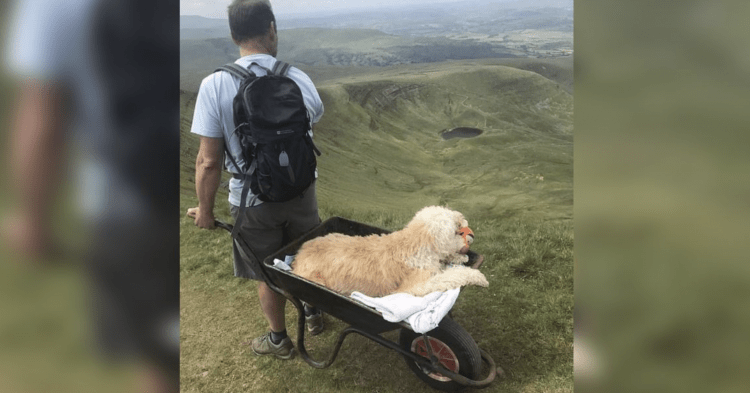 With unwavering love and determination, Carlos devised a heartwarming plan to take Monty back to the Brecon Beacons. Knowing that Monty could no longer hike up the mountain as he once did, Carlos ingeniously placed Monty in a wheelbarrow and took it upon himself to push his beloved companion up the mountain.