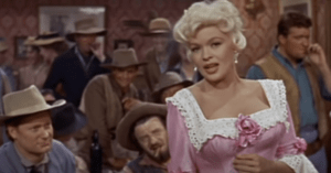 Jayne gained even more attention following her appearance in Fox’s 1957 comedy blockbuster Will Success Spoil Rock Hunter?. That same year, she received a Golden Globe Award for Most Promising Newcomer – Female. The following year, she starred alongside Kenneth More in the Western The Sheriff of Fractured Jaw (1958).