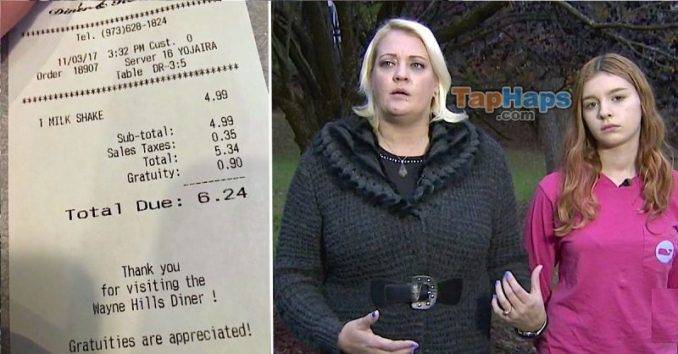 Bella went to her favorite diner with a group of friends. She ordered a milkshake and sent her mom Melissa a photo of her signed receipt. That’s when the confused mom noticed a strange charge on the bill for something “extra.”