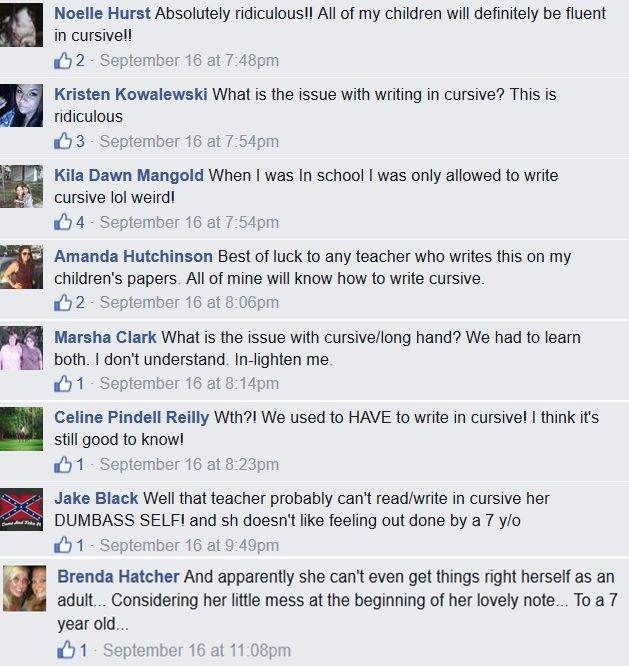 “Alyssa is 7!!! Not only is her mother a military veteran but, she took the time to teach her very young child how to write in cursive… This is her teacher’s response… What is wrong with today’s school system/society???”