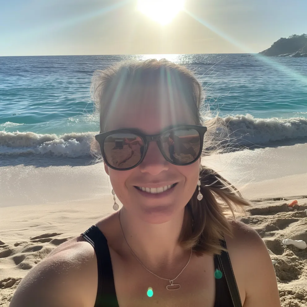 We were on this beautiful beach, and I was wearing this new dress I bought just for the trip. I felt good about myself, which is rare these days after two kids and all. I asked Luke, “Can you take a picture of me with the sunset?”
