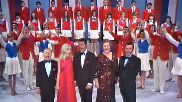 Kate delivers another epic rendition of the song penned by Irving Berlin. The orchestra plays the familiar fanfare as her voice soars to the song’s final high note. The audience is blown away by the majestic performance.Kate Smith was known as ‘The Songbird of the South’ because of her popularity during World War II. She had an illustrious radio and television career that spanned 5 decades. ‘The Dean Martin Show’ ran from 1965 to 1974 for a total of 264 episodes. The theme song to the series was his 1964 hit ‘Everybody Loves Somebody,’ and Dean closes the performance with it again.