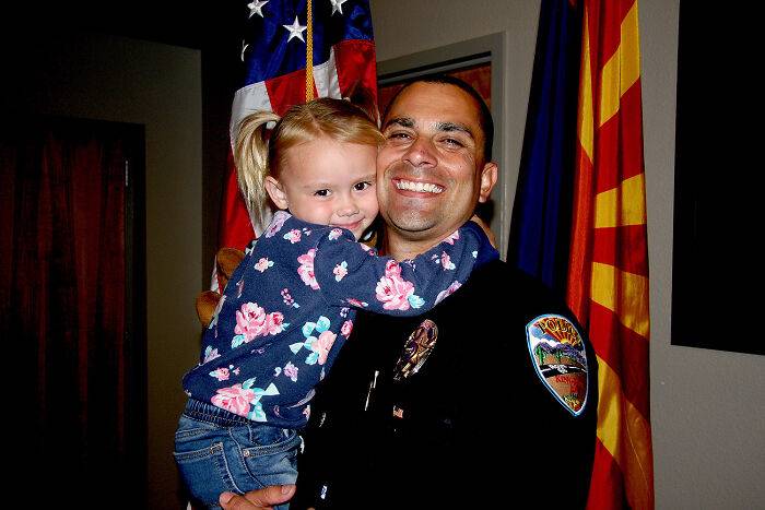 Kingman Police Department’s chief of police Rusty Cooper said that lieutenant Brian Zach’s commitment to public safety is exemplified in his commitment and love for Kaila, adding that both Brian and his wife Cierra are amazing parents.