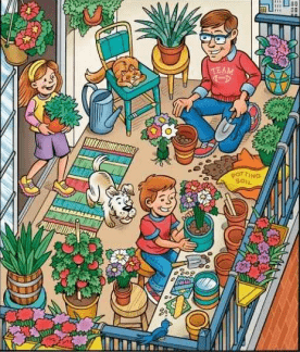 There’s a sneaky pencil hidden among the plants on the balcony.