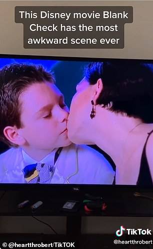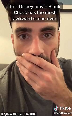 Rob Anderson shared the video of himself watching Blank Check along with the caption, “This Disney movie Blank Check has the most awkward scene ever.”