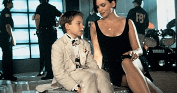 Viewers have found out that in the movie Blank Check, an adult woman sexually molests an eleven-year-old boy. In the scene, Brian Bonsall plays the fifth-grader Preston Waters. And the woman sitting on the bench next to him is thirty-something FBI agent Shay Stanley played by Karen Duffy. In the film, Duffy gives the young boy a kiss that some have come forward to label “the most awkward scene ever.”