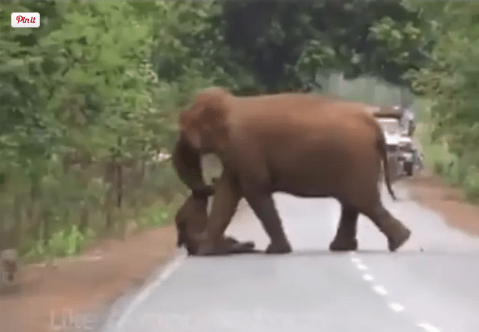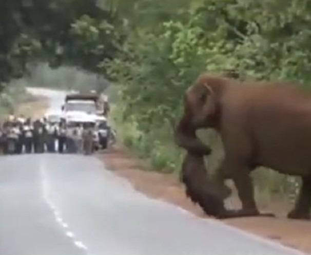 The heartwarming footage, posted on Twitter by Parveen Kaswan, a forest ranger in the Indian Foreign Service, has struck a chord with thousands of viewers. In the video, an adult Indian elephant emerges from a forested area onto a road, gently cradling the lifeless body of a young elephant with its trunk.