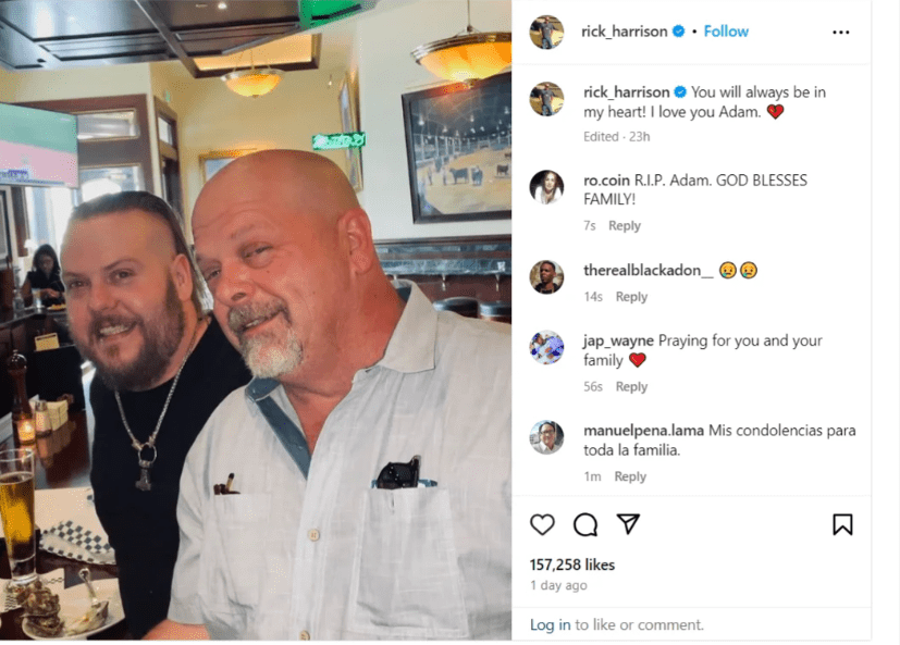 Adam Harrison, the son of “Pawn Stars” reality star Rick Harrison, has tragically passed away at 39. Rick Harrison shared his grief on social media, saying, “You will always be in my heart! I love you Adam. 💔” The public expressed shock and sorrow over the loss.