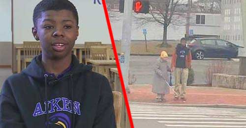 Photo shows teen helping elderly blind woman cross the street & I think he deserves our recognition