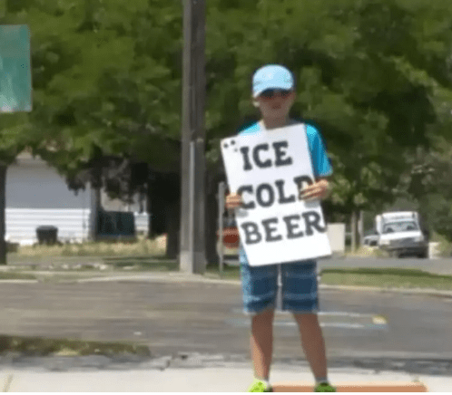He ultimately decided to offer something different instead of lemonade, so he moved closer to the sidewalk while holding a sign that read, “Ice Cold Beer.”