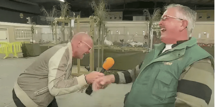 Ginius de Wijk is a chicken farmer in Zuidbroek, which is in the province of Groningen in the Netherlands. At a small animal show there, reporter Rob Mulder with Expeditie Grunnen is interviewing Ginius when the hilarious footage below is captured on camera. It doesn’t matter at all that the interview is in Dutch–you’ll figure out pretty quick what’s happening.