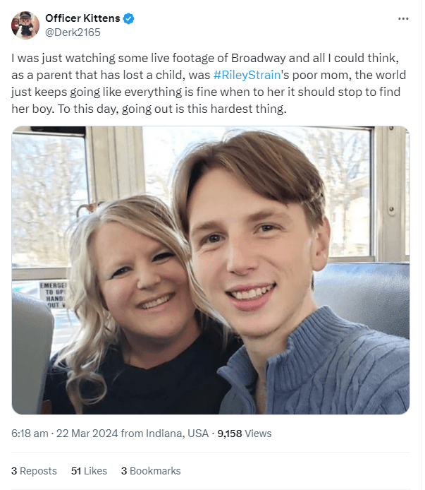 Riley seemed to have gone toward the river after leaving the bar, as shown by a bank card that was found there. After the find, search teams went through the river and finally found Strain’s body.