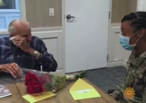 After hearing the WWII vet’s story and how much the letter meant to him, Jill used social media to track down Dashauna Priest, who was all grown up. At 21 years old, Priest surprised Frank Grasberger with a visit — only made sweeter by the fact that she arrived wearing her National Guard uniform as she serves in the military just like Frank once did.